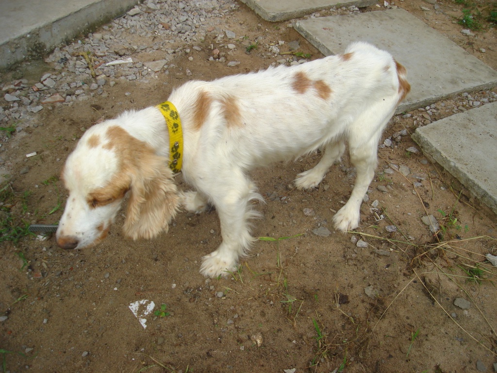 A história deste cão é uma história de negligência, de falta de humanidade. Segundo relatos, era um cão muito querido (algo questionável), mas após o nascimento de um bebê na família com quem vivia, foi largado sozinho, à própria sorte, para morrer no fundo de um quintal, desnutrido, desidratado e infestado de carrapatos.
